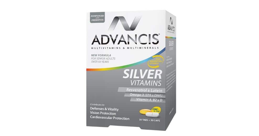Advancis Silver vitamins is a food supplement with vitamins, minerals, prebiotics, lutein and resveratrol, with an adjusted content of calcium and selenium, whose needs increase with age.